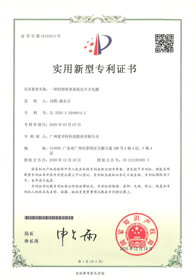 實用新型專利證書