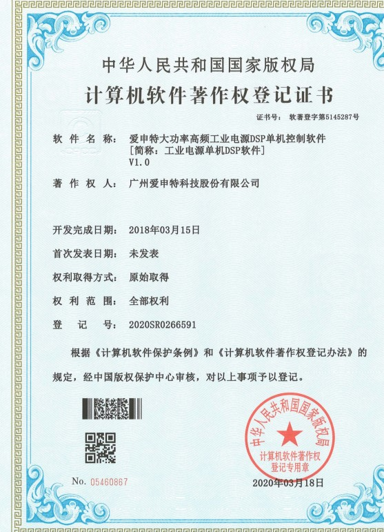 計算機軟件著作權登記證書